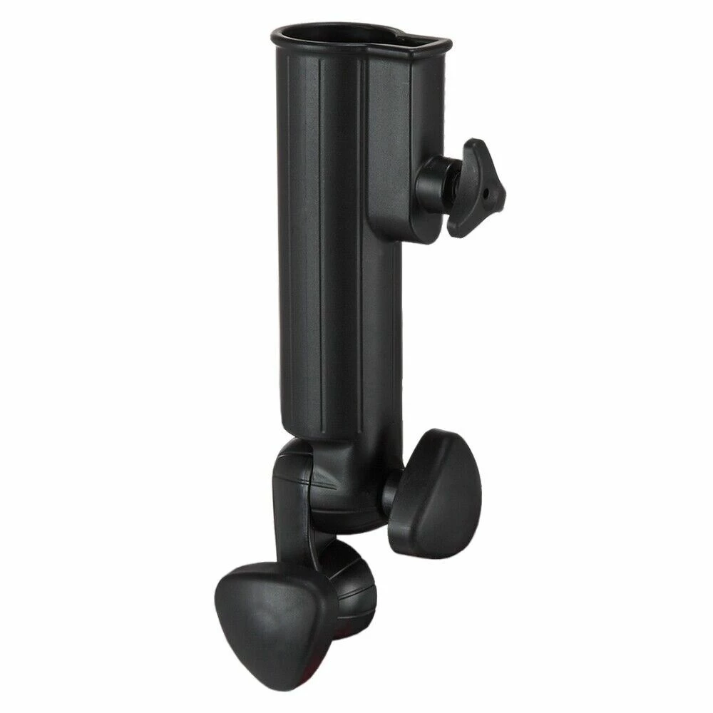 This umbrella holder securely attaches an umbrella to a golf cart, with a simple locking in mechanism so that the umbrella can be removed easily without taking holder off the cart.