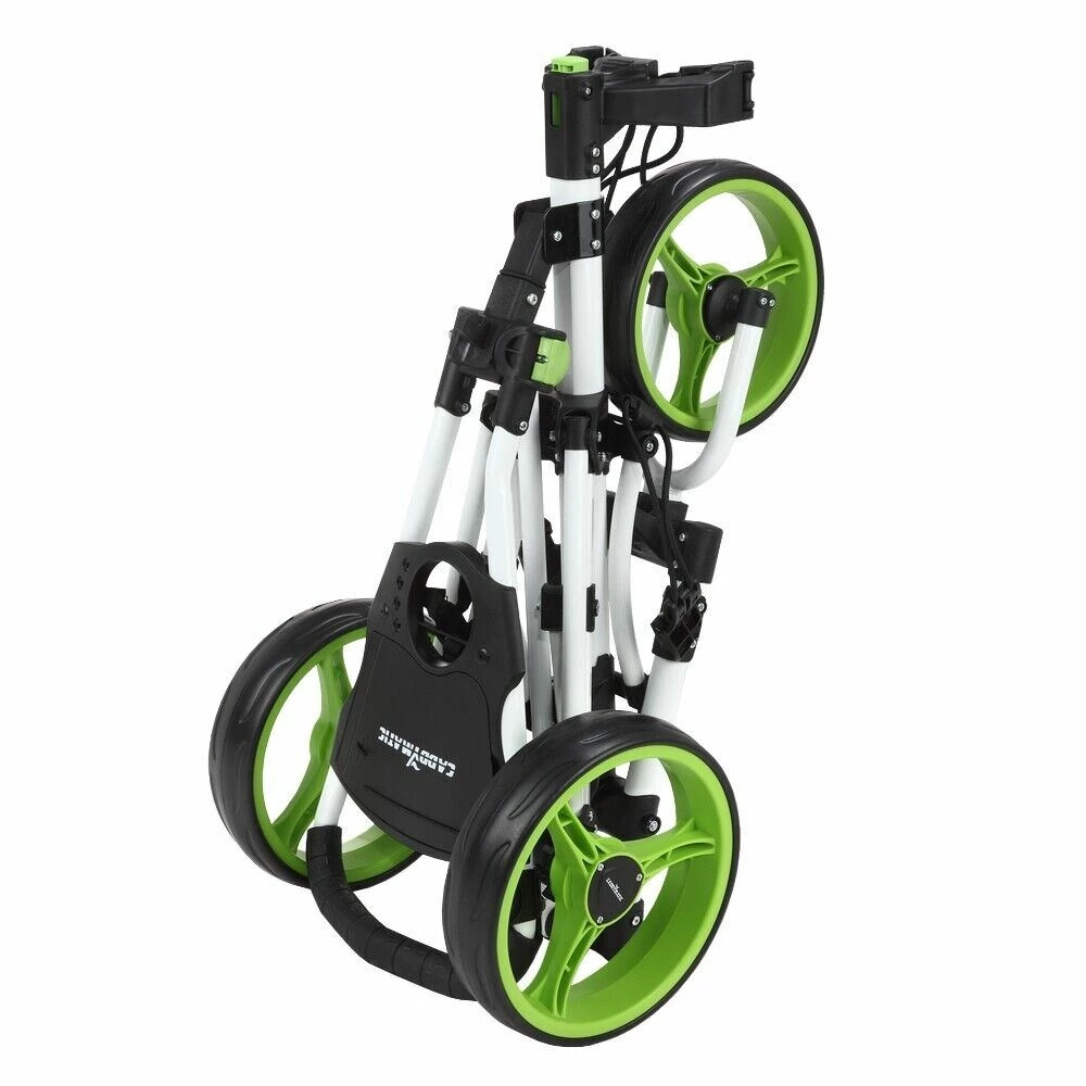 This push cart folds easily and quickly with just the push of a button to make it one of the most convenient folding carts on the market today. The quick release wheels further enhance this.